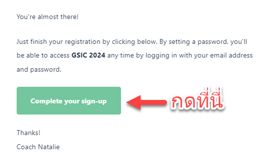 2) ภายในอีเมล์จะมีปุ่ม "Complete your sign-up" ให้กดที่นี่ตามภาพด้านล้างที่ลูกศรสีแดงชี้