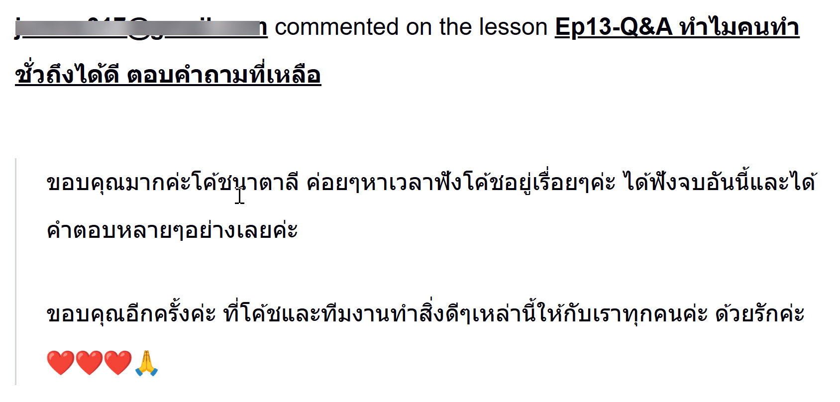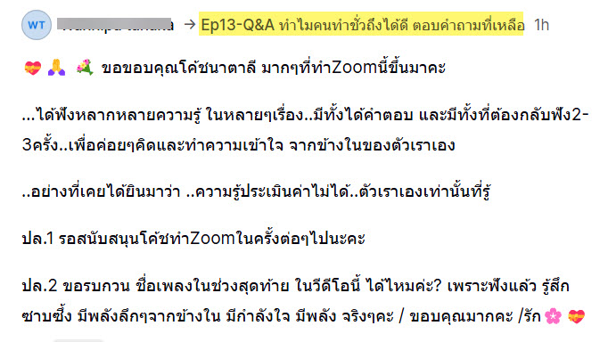 เป็นสมาธิที่ทรงพลังอย่างมาก (อ่านความรู้สึกของผู้เข้าร่วมไลฟ์สดได้ค่ะ)